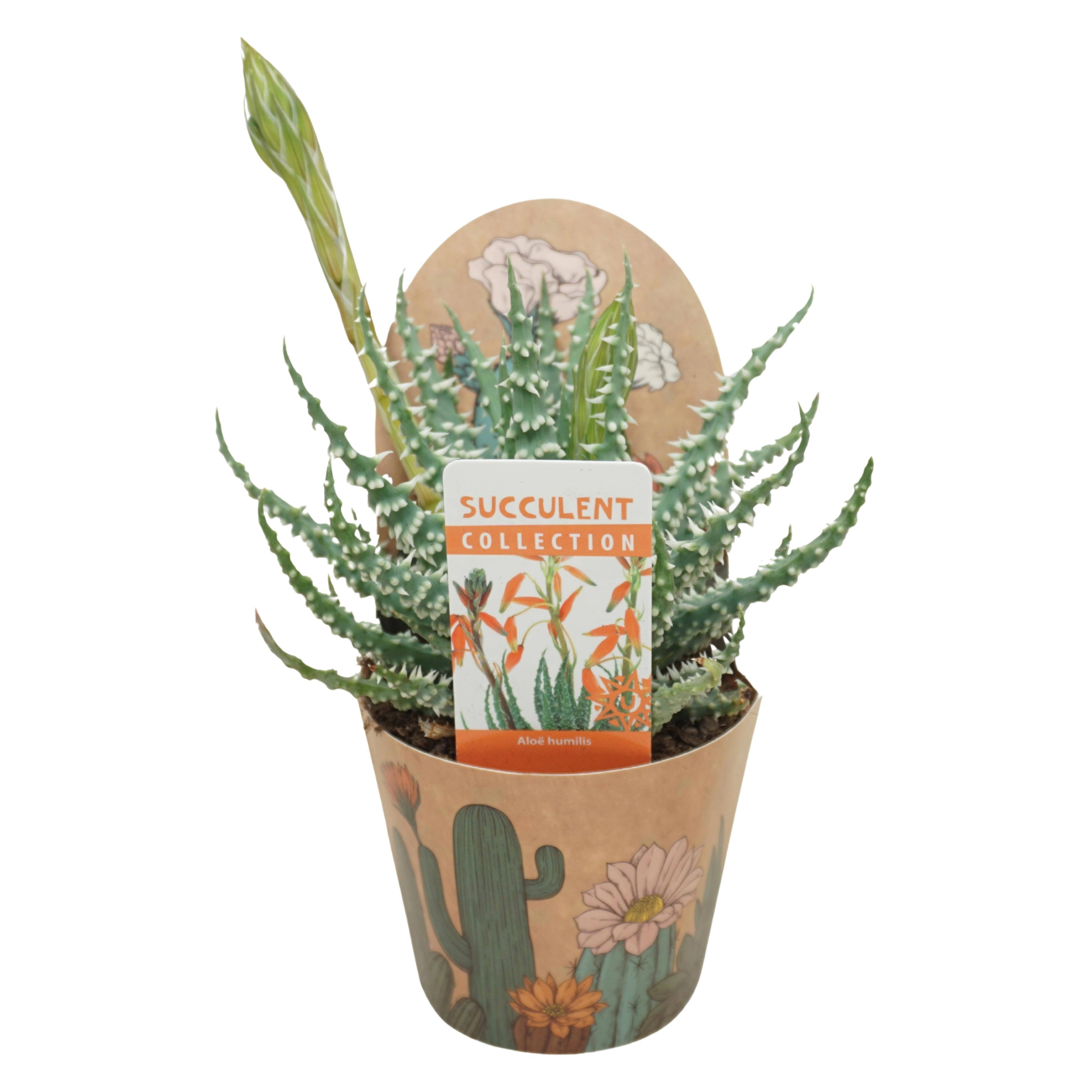 Aloë humilis 10,5 cm bloeiend in Ubink potcover |