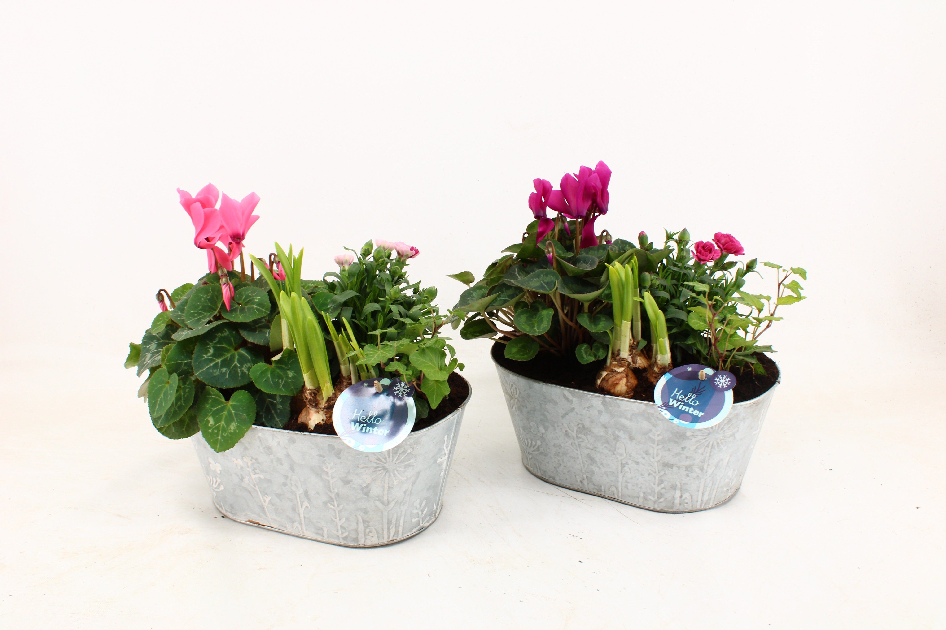 Arrangementen Snow in rechthoekige zinkepot Job, D 28