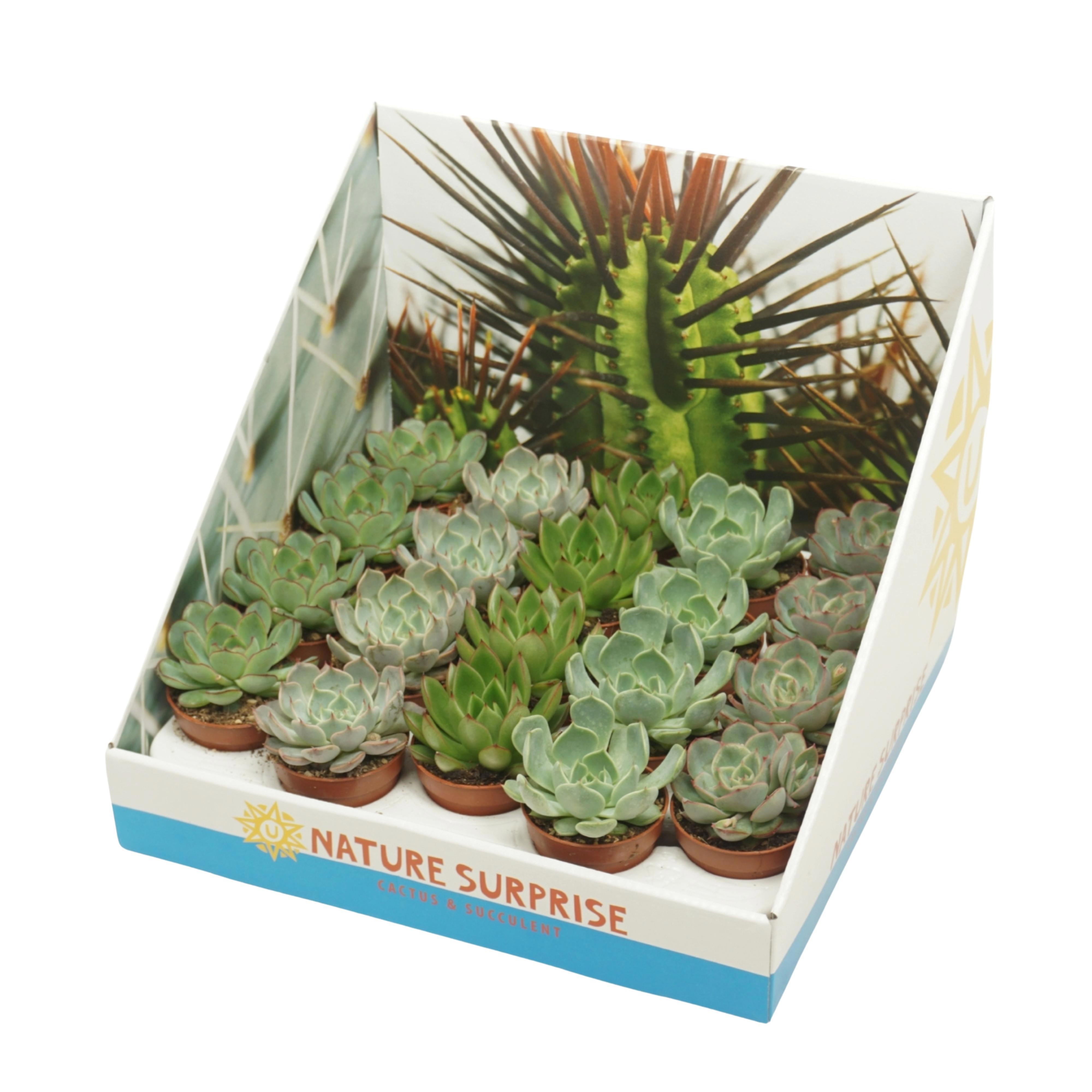 Echeveria mix 5,5 cm in presentatiedoos |