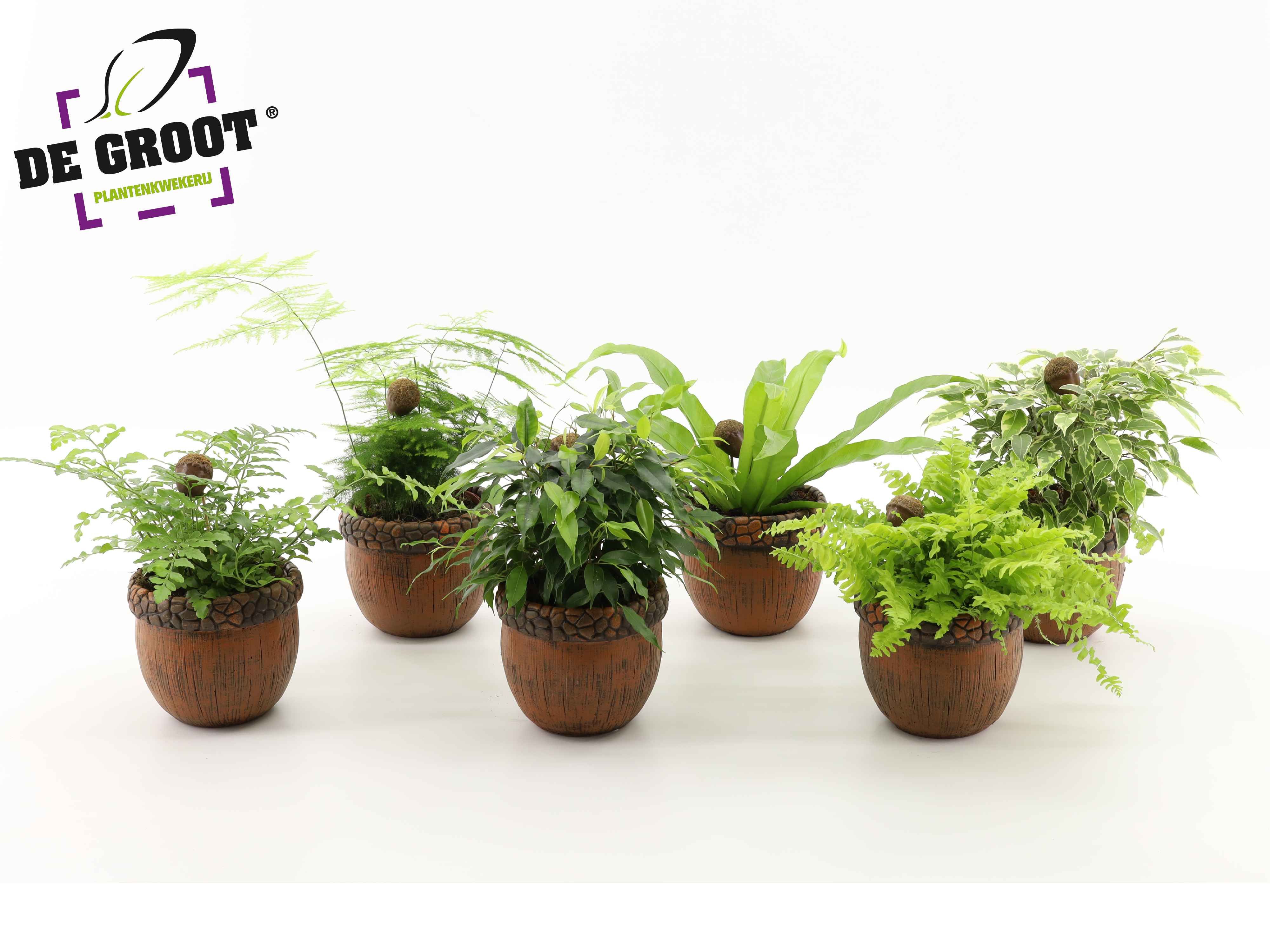 Groenmix in eikelpot + bijsteker, D 12