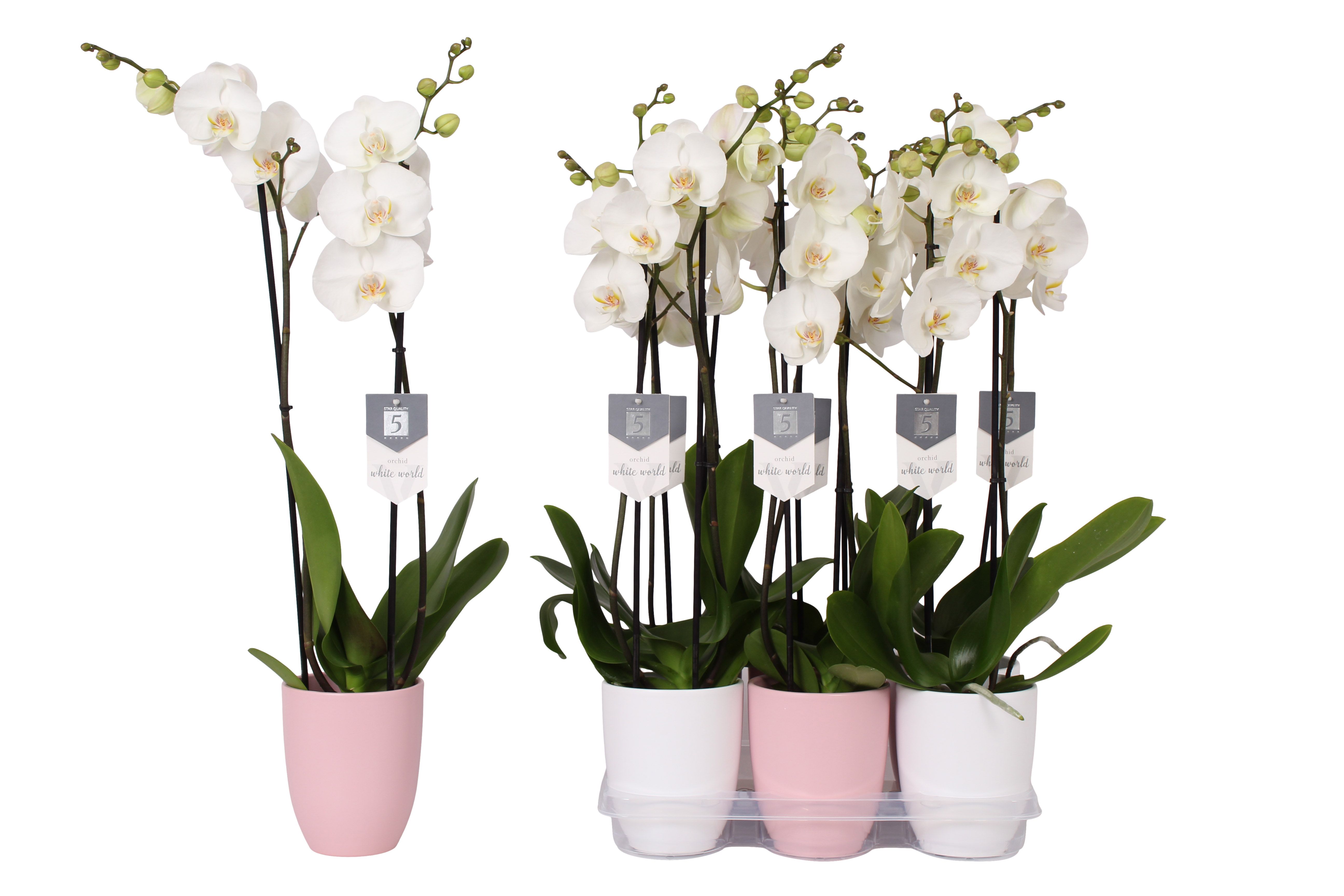 Phalaenopsis White World, 2-spike Pink and White Ceramics |